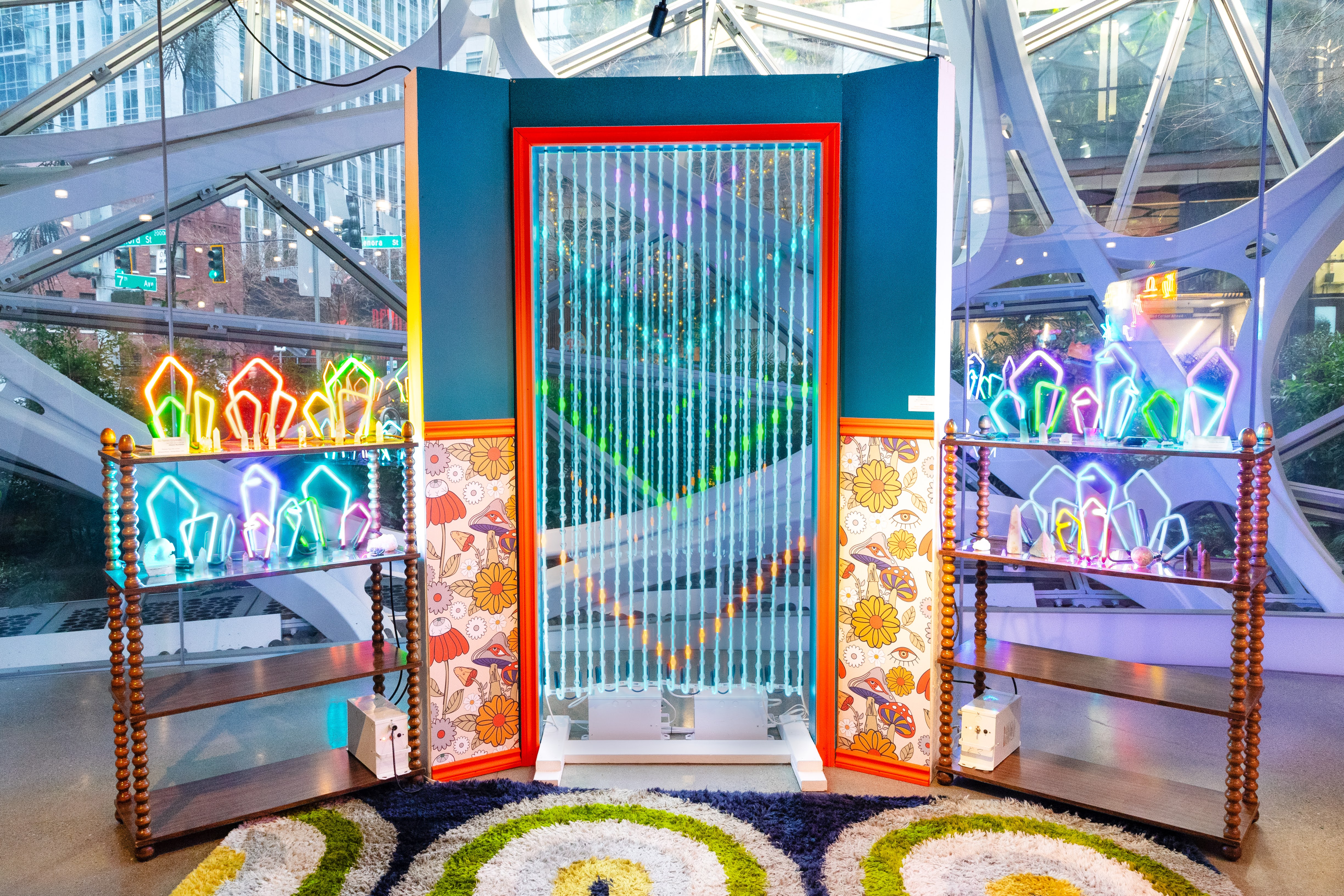 Alleson Buchanan's "Portal" and neon crystals at Understory, 2024