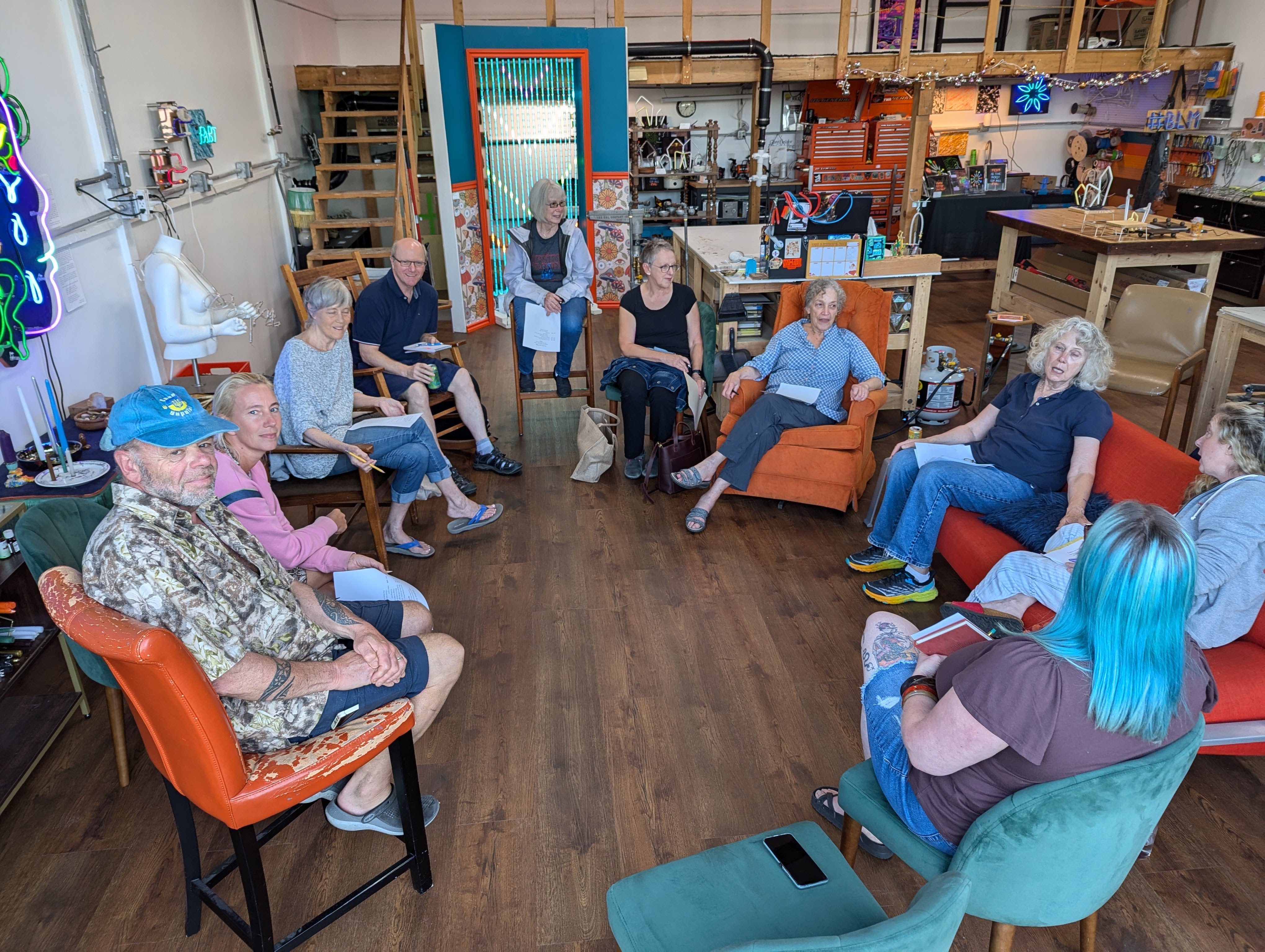 The art walk crew in my studio debriefing our first annual Dockton Art Walk