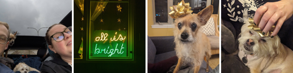 Regina is fifteen now, and since June ’24 has dealt with occasional seizures, incontinence, frequent UTIs, and side effects from the medications to treat all of the above. Fortunately she’s been healthier for the last six months, and besides her failing eyesight (and selective hearing), is quite spry for her age. She had an ER visit this Christmas Day, and is recovering on her favorite electric blanket.